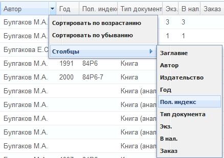 Упорядочить документы в таблице результатов можно кликнув по заголовку колонки.